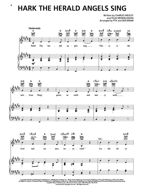 This collection provides piano, vocal and guitar arrangements corresponding to the unique a cappella vocal treatments that Pentatonix presented on their holiday CD. Songs: Dance of the Sugar Plum Fairy · Winter Wonderland/Don't Worry, Be Happy · Hark! The Herald Angels Sing · Let It Go · Mary, Did You Know? · It's the Most Wonderful Time of the Year · Santa Claus Is Comin' to Town · Silent Night · Sleigh Ride · That's Christmas to Me · White Winter Hymnal.