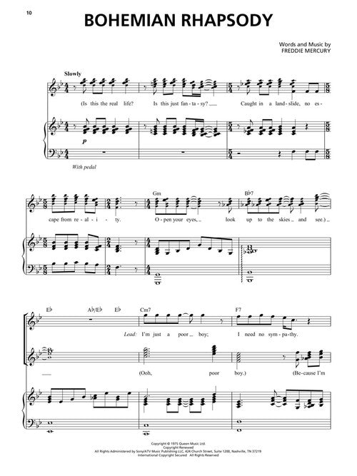 13 hits arranged for singers exactly how Freddie Mercury sang them, with piano accompaniment. Includes: Bicycle Race · Bohemian Rhapsody · Crazy Little Thing Called Love · Don't Stop Me Now · Fat Bottomed Girls · Good Old-Fashioned Lover Boy · Killer Queen · Now I'm Here · Play the Game · Save Me · Somebody to Love · We Are the Champions · You're My Best Friend.
