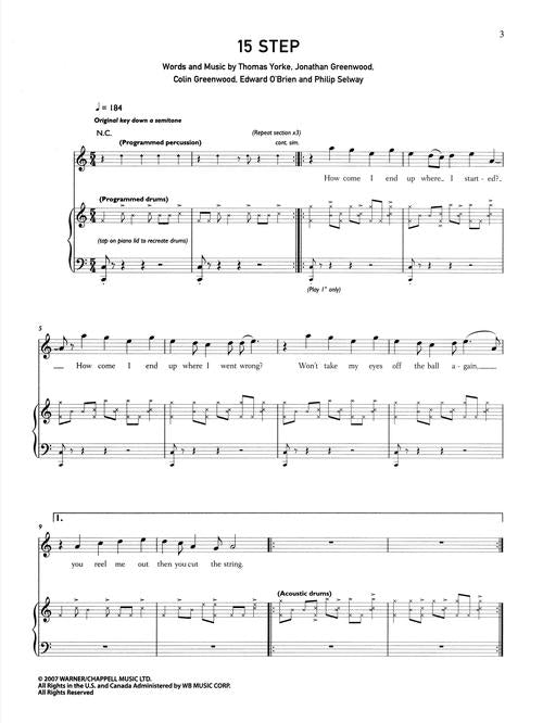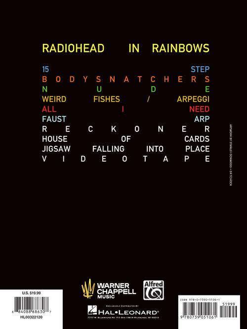This long-awaited Radiohead album, first released as a digital download, is now available everywhere! Topping the U.S. Billboard 200 Chart, In Rainbows earned praise from fans and critics alike. Music includes lyrics, melody line, and chord changes with professionally arranged piano accompaniment. Titles: 15 Step · Bodysnatchers · Nude · Weird Fishes/Arpeggi · All I Need · Faust Arp · Reckoner · House of Cards · Jigsaw Falling into Place · Videotape.