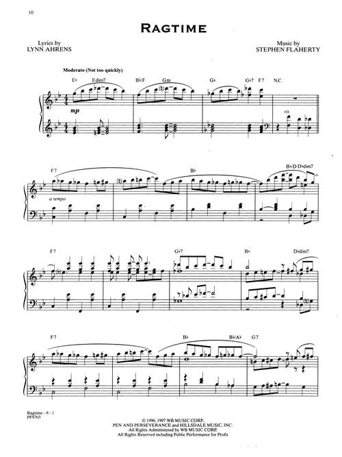 Vocal selections from the Tony-winning score by Stephen Flaherty. Titles are: Back to Before · Buffalo Nickel Photoplay, Inc. · Gliding · Goodbye, My Love · Make Them Hear You · New Music · Our Children · Ragtime · Sarah Brown Eyes · Till We Reach That Day · Wheels of a Dream · Your Daddy's Son.