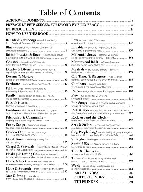 Not your average fake book! Great for musicians, camps, teachers or for singing with family and friends. This songbook is a treasure trove of well-loved songs from blues, country, jazz and Motown to composed folk, traditional ballads, gospel and rounds. Using the same unique format as the editors' best-selling songbook, Rise Up Singing, Rise Again provides easy access to 1200 important songs in a compact, affordable collection. Including extensive liner notes and well-organized indices, this is an important resource for anyone who loves music.