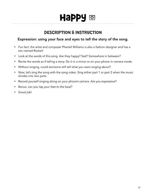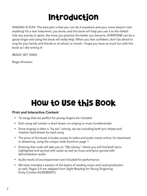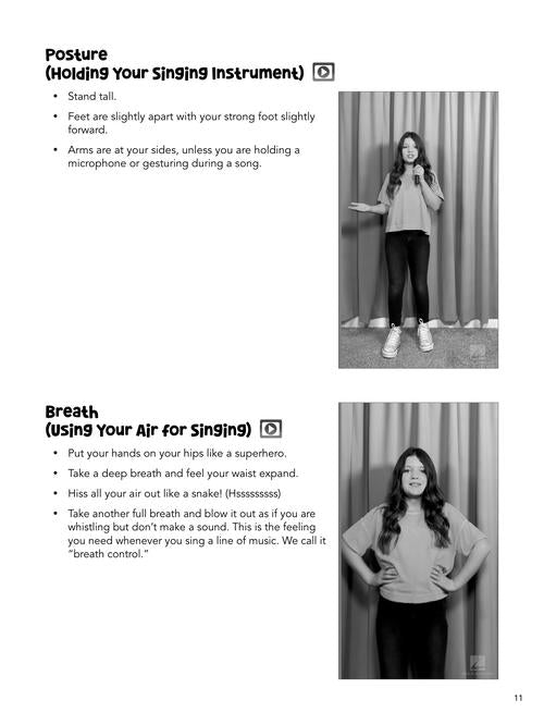 Singing for Kids is written to guide young singers as they discover their voice. Each song includes a short lesson and singing or music fundamentals. The audio includes a professional demonstration track as well as an accompaniment track for performance. Step-by-step video instruction is also included for each topic. Covers: beats, rhythms, scales and pitches, posture, breath, building your voice, and much more! And kids get to learn by singing 13 great songs, including: Baby Shark · Christmas Time Is Here · Don't Stop Believin' · Dynamite · Happy · Lean on Me · Let It Go · A Million Dreams · Under the Sea · and more!