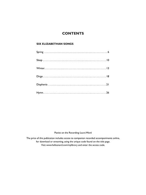 Six Elizabethan Songs - Medium/Low Voice - New Edition - With Online Accompaniments