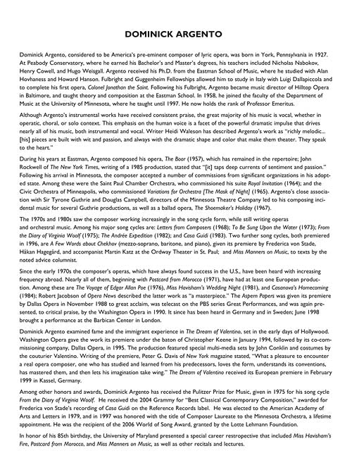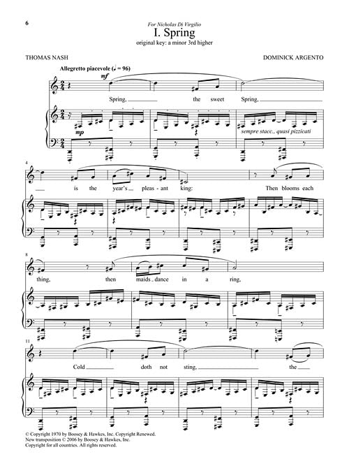 Contents: Spring · Sleep · Winter · Dirge · Diaphenia · Hymn. Includes composer commentary and access to companion recorded piano accompaniments online for download or streaming.
