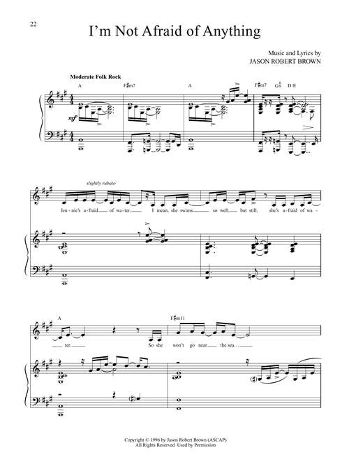 Composer Jason Robert Brown says of his debut musical, It's about one moment. It's about hitting the wall and having to make a choice, or take a stand, or turn around and go back. The moment you think you know where you stand, the things that you're sure of slip from your hand, and you're suddenly a stranger in some completely different land. Our songbook features 10 vocal selections from the show: Christmas Lullaby · The Flagmaker, 1775 · Hear My Song · I'd Give It All for You · I'm Not Afraid of Anything · King of the World · The New World · She Cries · Stars and the Moon · Surabaya-Santa. Also includes an introduction by Brown.