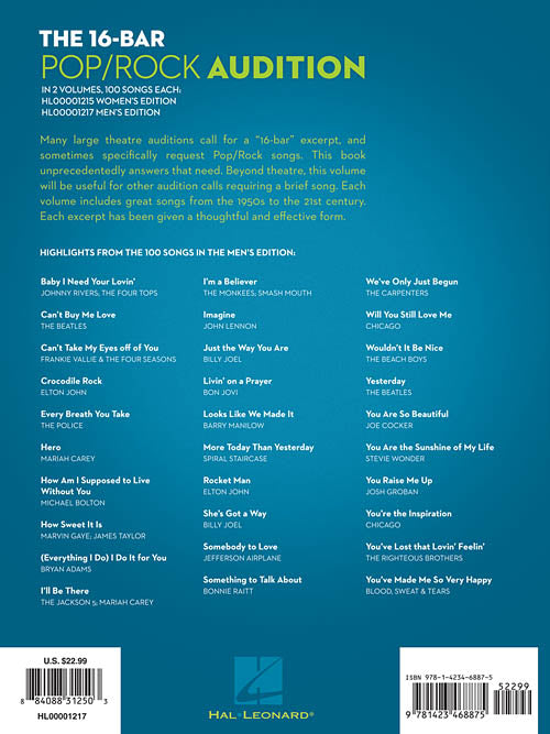 100 Hit Songs Excerpted for Successful Auditions Men's Edition Voice and Piano