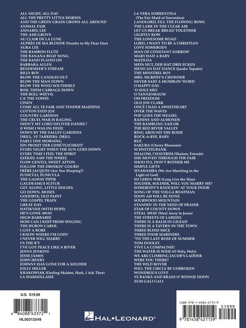 A comprehensive collection of over 120 folk favorites, including: All Night, All Day · The Banana Boat Song · Cotton Eyed Joe · Down by the Salley Gardens · Frere Jacques (Are You Sleeping?) · How Can I Keep from Singing · John Henry · Man of Constant Sorrow · O Happy Day · Pop Goes the Weasel · Somebody's Knockin' at Your Door · Three Blind Mice · and many more.