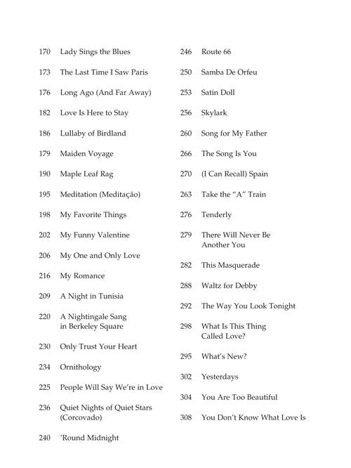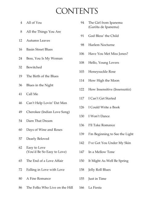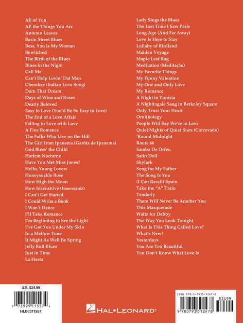 This second edition is a selection of 75 prime jazz favorites, including: All of You · All the Things You Are · Autumn Leaves · Bewitched · Can't Help Lovin' Dat Man · Cherokee (Indian Love Song) · The Girl from Ipanema (Garota De Ipanema) · Honeysuckle Rose · In a Mellow Tone · Lady Sings the Blues · Lullaby of Birdland · My Funny Valentine · A Night in Tunisia · Quiet Nights of Quiet Stars (Corcovado) · Satin Doll · Skylark · Song for My Father · and more.