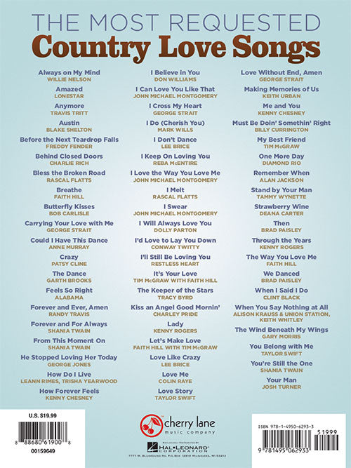 Fifty-nine romantic renderings by country crooners: Always on My Mind · Amazed · Butterfly Kisses · Crazy · Forever and Ever, Amen · He Stopped Loving Her Today · I Swear · I Will Always Love You · Love Story · Making Memories of Us · One More Day · Stand by Your Man · Through the Years · When You Say Nothing at All · You're Still the One · and more.