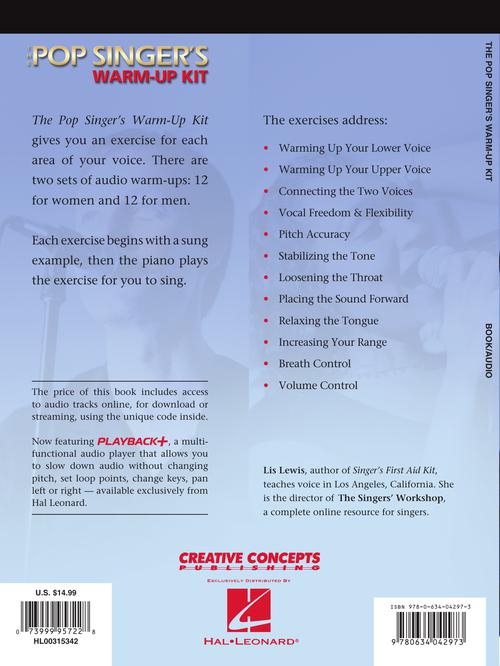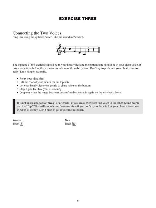 Essential vocal instruction for the pop singer, with terrific accompanying audio that can be accessed online of a dozen warm-up exercises specific to men and women. Each exercise begins with a sung example, then the piano plays the exercise for you to sing. The exercises address: warming up your lower and upper voice, connecting the two voices, loosening the throat, placing the sound forward, relaxing the tongue, breath and volume control, increasing your range, pitch accuracy, stabilizing the tone, and more. The book shows the practical objectives of each exercise and gives helpful pointers for success. Ideal for singers who aspire to American Idol!