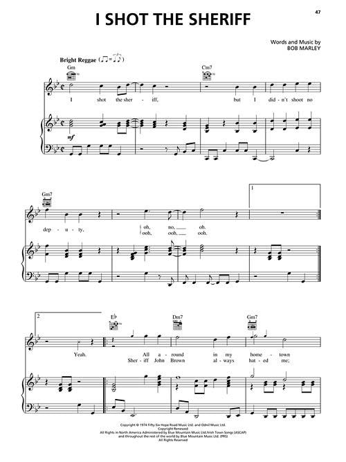 Jah mon! Here are more than 40 groovin' reggae classics, including: Bad Boys · Equal Rights · Get up Stand Up · The Harder They Come · I Shot the Sheriff · The Israelites · Legalize It · Many Rivers to Cross · A Message to You Rudy · No Woman No Cry · One Love · Pass the Dutchie · Pressure Drop · Red, Red Wine · Redemption Song · Three Little Birds · The Tide Is High · Tomorrow People · and more.