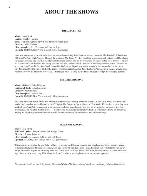 42 songs, including: All Good Gifts · Alone at the Drive-In Movie · Anthem · The Apple Tree (Forbidden Fruit) · Asking for You · At the Grand Hotel · Beautiful Girls · A Bit of Earth · Boy for Sale · Bring Him Home · Close Every Door · Geraniums in the Winder · High Flying, Adored · I Believe in You · I Know About Love · I like You · I Met a Girl · I Only Want to Say (Gethsemane) · I Will Follow You · Jasper's Confession · Like a God · Love Can't Happen · Lucky in Love · Margot · Maybe I Should Change My Ways · Miracle of Miracles · The Music of the Night · Old Devil Moon · On This Night of a Thousand Stars · Once upon a Time Today · Serenade · She Loves Me · She Wasn't You · Sit down You're Rockin' the Boat · Tango Tragique · This Is the Moment · Tonight at Eight · Where I Want to Be · Why God Why? · Willkommen · Winter's on the Wing · Young and Foolish.