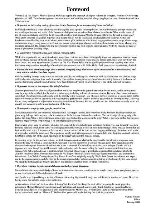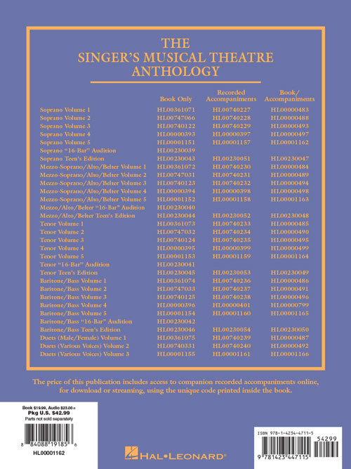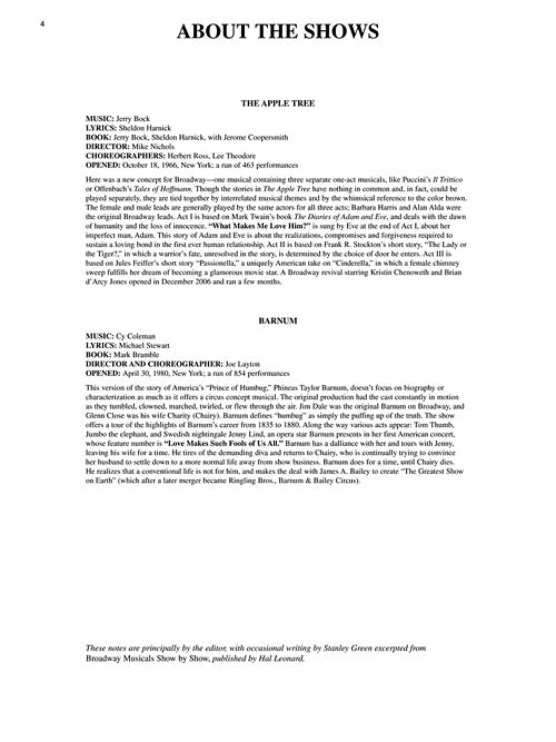 The world's most trusted source for authentic editions of theatre music for singers has expanded with yet another volume. Many of the songs are found in no other collections. The 40 songs in each volume are in the original keys, excerpted from vocal scores and piano/conductor rehearsal scores. Includes both recent shows and a deeper look into classic musicals. Contents: THE APPLE TREE: What Makes Me Love Him · BARNUM: Love Makes Such Fools of Us All · CANDIDE: Glitter and Be Gay · DIRTY ROTTEN SCOUNDRELS: Nothing Is Too Wonderful to Be True · DO RE MI: Cry like the Wind · THE DROWSY CHAPERONE: Bride's Lament · FIDDLER ON THE ROOF: Matchmaker · FUNNY FACE: He Loves and She Loves · GREY GARDENS: Daddy's Girl · Will You? · Around the World · Another Winter in a Summer Town · JUBILEE: Begin the Beguine · KISMET: Baubles, Bangles and Beads · LADY, BE GOOD!: Fascinating Rhythm · The Man I Love · THE LIFE: I'm Leaving You · THE LIGHT IN THE PIAZZA: The Beauty Is · Fable · LITTLE WOMEN: Some Things Are Meant to Be · MARY POPPINS: Practically Perfect · Anything Can Happen · MR. PRESIDENT: The Secret Service · MYTHS AND HYMNS: How Can I Lose You? · OKLAHOMA!: People Will Say We're in Love · ON THE TWENTIETH CENTURY: Never · PETER PAN: Who Am I? · My House · ROSALIE: How Long Has This Been Going On? · SHE LOVES ME: No More Candy · 1600 PENNSYLVANIA AVENUE: Take Care of This House · SONGS FOR A NEW WORLD: The Flagmaker, 1775 · SPRING AWAKENING: Whispering · STRIKE UP THE BAND: I've Got a Crush on You · SUNSET BOULEVARD: Too Much in Love to Care · WEST SIDE STORY: I Feel Pretty · Somewhere · WICKED: Let Us Be Glad · Thank Goodness · not from a show: The Girl in 14G.