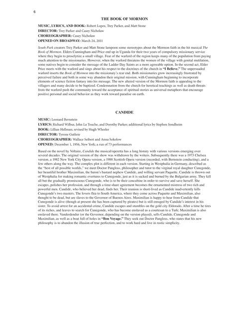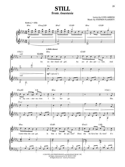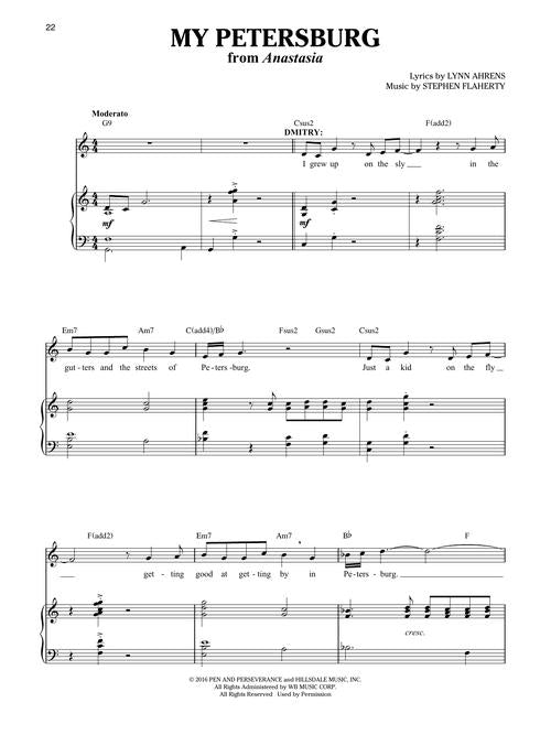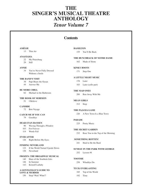 A collection of songs from the musical stage presented in their authentic settings, excerpted from the original vocal scores. There is no duplication from prior volumes! Contents: AMÉLIE: Thin Air · ANASTASIA: My Petersburg · Still · ANNIE: You're Never Fully Dressed Without a Smile · THE BAND'S VISIT: Papi Hears the Ocean · Answer Me · BE MORE CHILL: Michael in the Bathroom · THE BOOK OF MORMON: I Believe · CANDIDE: Bon Voyage · CATCH ME IF YOU CAN: Goodbye · DEAR EVAN HANSEN: Waving Through a Window · For Forever · Words Fail · EVER AFTER: Right Before My Eyes · FINDING NEVERLAND: If the World Turned Upside Down · Neverland · FROZEN THE BROADWAY MUSICAL: Hans of the Southern Isles · In Summer · Kristoff Lullaby · A GENTLEMAN'S GUIDE TO LOVE & MURDER: Stop! Wait! What?! · HAMILTON: You'll Be Back · THE HUNCHBACK OF NOTRE DAME: Made of Stone · KINKY BOOTS: Step One · A LITTLE NIGHT MUSIC: Later · THE MAD ONES: Run Away With Me · MEAN GIRLS: Stop · THE PAJAMA GAME: A New Town Is a Blue Town · PARADE: Pretty Music · THE SECRET GARDEN: Race You to the Top of the Morning · SOMETHING ROTTEN!: Hard to Be the Bard · SUNDAY IN THE PARK WITH GEORGE: Lesson #8 · TOOTSIE: Waddya Do · TUCK EVERLASTING: Top of the World · Time