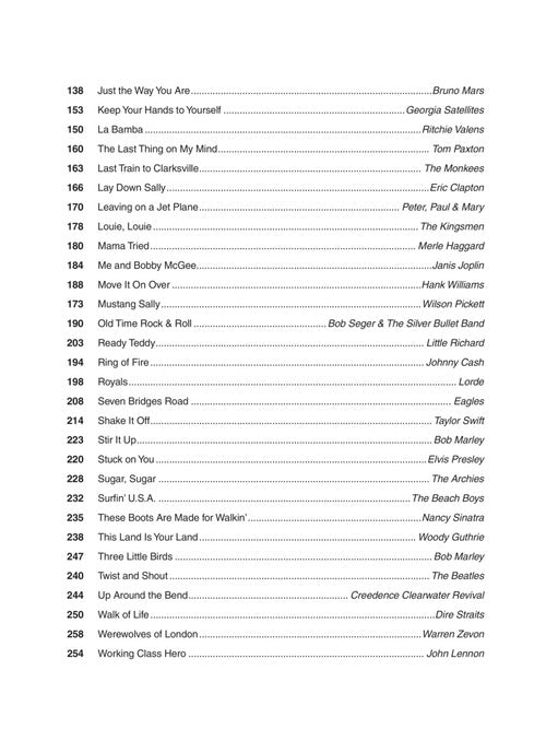 There's a wide variety of catchy, popular, recognizable songs you can play just by knowing a handful of chords. This songbook features arrangements for piano and voice with guitar chord frames for 60 favorite songs that use only three chords each! Includes: All About That Bass · Blue Eyes Crying in the Rain · Chasing Cars · Down on the Corner · Evil Ways · Free Fallin' · Hound Dog · I'll Take You There · Jolene · La Bamba · Leaving on a Jet Plane · Mustang Sally · Old Time Rock & Roll · Royals · Shake It Off · Twist and Shout · Walk of Life · and more.