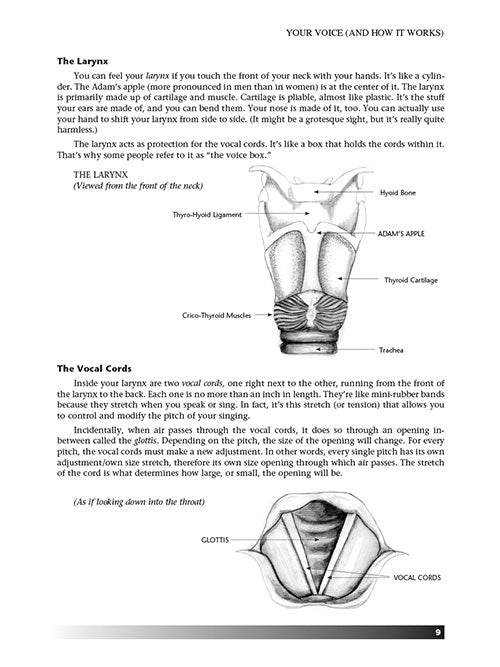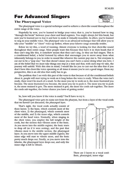 Stop straining to hit those high notes! Unlock your true potential and start singing easily and effortlessly with this book by Musicians Institute vocal instructor Dena Murray. She teaches how to: breathe naturally; improve your speaking voice; stop holding, pushing and squeezing; develop your natural three-octave range; place your chest and head voices; and bridge the registers to sound like one voice. Includes online access to professionally recorded demonstrations, guided exercises, and plenty of practice tracks.