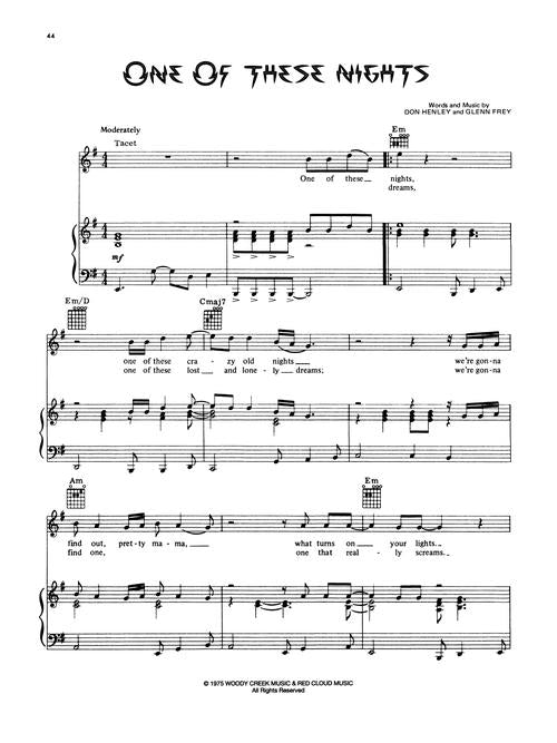 Eagles - Their Greatest Hits 1971-1975Publisher: Alfred Publishing Co.Category: Keyboard & Piano/Vocal/GuitarSeries: Piano/Vocal/Guitar Artist SongbookFormat: SoftcoverIncludes: Take It Easy · Lyin' Eyes · One of These Nights · Peaceful Easy Feeling · The Best of My...Regular price $27.99 -