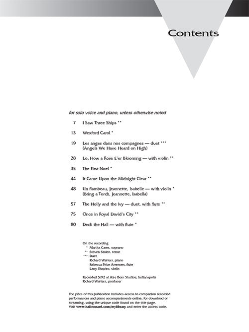 Classical CarolsThe Vocal Library High VoicePublisher: Hal LeonardCategory: VocalSeries: Vocal CollectionFormat: Softcover Audio OnlineLovely, fresh, artistic arrangements that truly make art songs of Christmas carols. Companion recordings include complete performances as well as accompaniments. Includes eight...Regular price $26.99 -