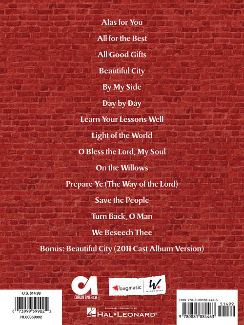 Composer: Stephen SchwartzGodspell - Revised EditionPublisher: Hal LeonardCategory: Keyboard & Piano/Vocal/GuitarSeries: Vocal SelectionsFormat: SoftcoverThis revised edition features 14 songs from Stephen Schwartz's breakthrough musical, in all-new engravings reviewed by Schwartz himself! Includes: Alas for You ·...Regular price $27.99 -