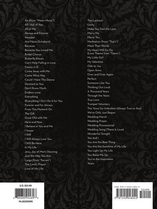 The Best Wedding Songs Ever - 2nd Edition Publisher: Hal Leonard Category: Keyboard & Piano/Vocal/Guitar Series: Piano/Vocal/Guitar Songbook Format: Softcover 70 favorite songs of love and commitment are featured in this updated second edition of this...Regular price $35.99 -