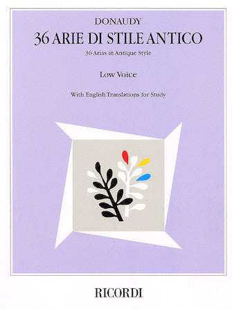 Composer: Stefano Donaudy36 Arie di Stile AnticoLow VoicePublisher: RicordiCategory: VocalSeries: Vocal CollectionFormat: PaperbackA new edition of Donaudy's beloved songs, collected for the first time in one volume, and published in two keys. Includes line-by-line English translations...Regular price $35.99