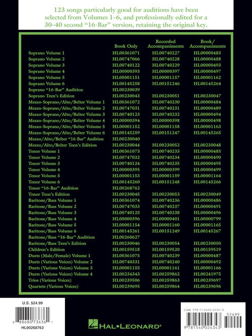 Composer: VariousThe Singer's Musical Theatre Anthology: Tenor - 16-bar Audition - Revised (Replaces 00230041)Publisher: Hal LeonardCategory: VocalSeries: Vocal CollectionFormat: SoftcoverTenor edition. Songs especially good for auditions have been chosen from Volumes 1-5 of The Singer's Musical...Regular price $32.99 -