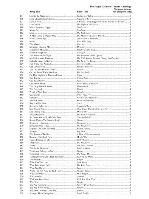 The Singer's Musical Theatre Anthology - Teen's EditionTenor Accompaniment CDs OnlyCDContents: BELLS ARE RINGING: I Met a Girl · CELEBRATION: Fifty Million Years Ago · CHESS: Anthem · FIDDLER ON THE ROOF: Miracle of Miracles ·...Regular price $32.99 -