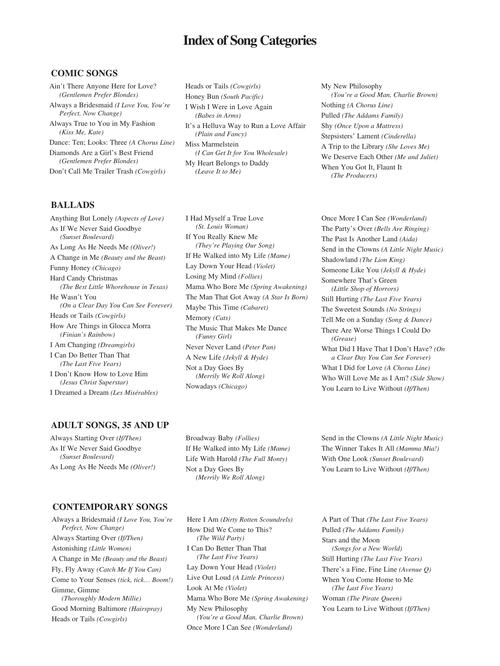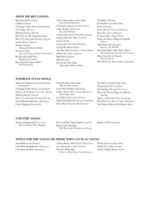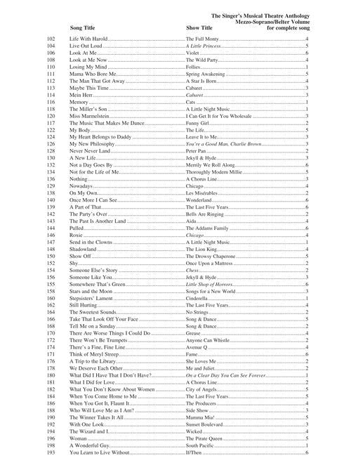 Composer: VariousThe Singer's Musical Theatre Anthology - 16-Bar Audition - Revised EditionMezzo-Soprano/Belter EditionSoftcoverContents: Ain't There Anyone Here For Love? · Always A Bridesmaid · Always True To You In My Fashion · And I Am Telling...Regular price $32.99
