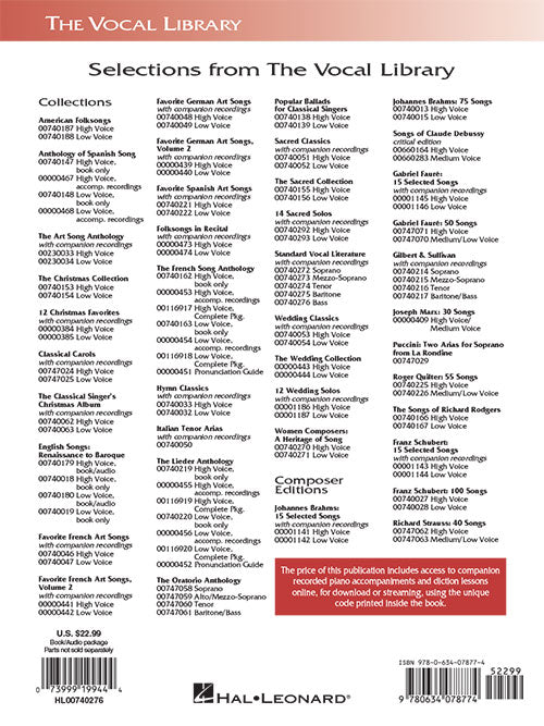 Standard Vocal Literature - An Introduction to RepertoireBassPublisher: Hal LeonardCategory: VocalSeries: Vocal CollectionFormat: Softcover Audio OnlineThis series of 5 book/audio packs is an introduction to art song in English, French, German, Italian and Spanish. Each volume...Regular price $29.99 -