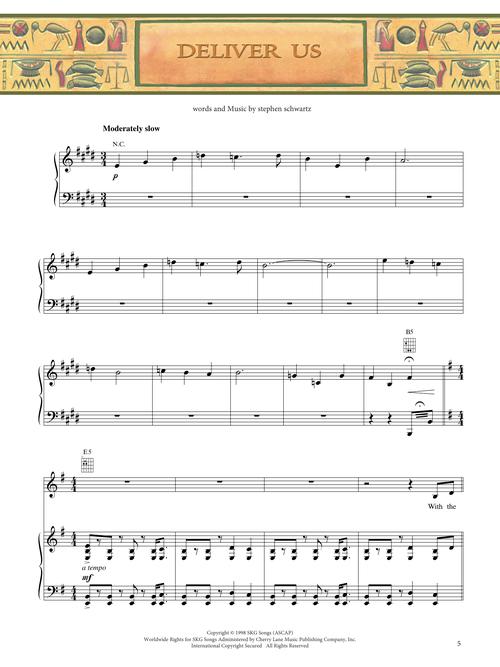 Composer: Stephen SchwartzThe Prince of EgyptPublisher: Cherry Lane MusicCategory: Keyboard & Piano/Vocal/GuitarSeries: Vocal SelectionsFormat: PaperbackSelections from the acclaimed DreamWorks animated film include all feature songs by Stephen Schwartz including the Oscar-winning When You Believe as well...Regular price $27.99