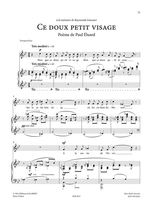 Composer: Francis Poulenc50 Mélodies (50 Songs)for Medium/Low Voice and PianoPublisher: DurandCategory: VocalSeries: Vocal CollectionFormat: SoftcoverPoulenc compiled a catalogue of 150 songs, a body of work of consistently high quality, containing great diversity, that marks him oout...Regular price $29.99 -