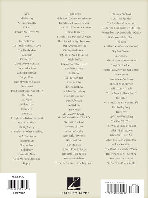 The Great American Songbook - Movie SongsMusic and Lyrics for 100 Classic SongsPublisher: Hal LeonardCategory: Keyboard & Piano/Vocal/GuitarSeries: Piano/Vocal/Guitar SongbookFormat: Softcover100 timeless hits from the silver screen are showcased in this massive collection of classics in...Regular price $41.99 -