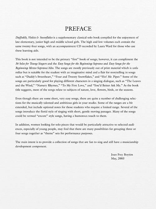 Daffodils, Violets and Snowflakes - High Voice Classical Songs for Young Women H
