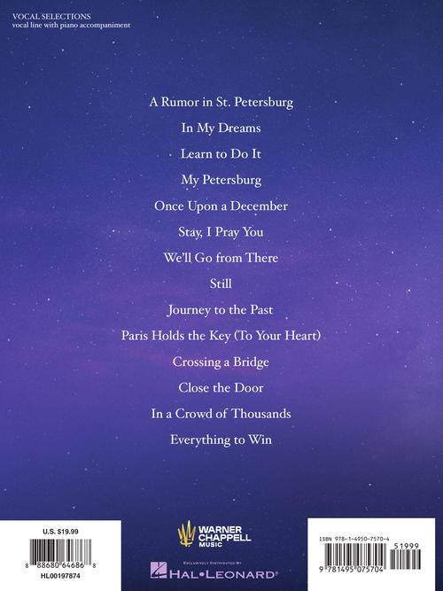 Composer: Stephen FlahertyAnastasiaThe New Broadway MusicalSoftcoverThis hit musical, inspired by the Twentieth Century Fox motion picture, came to Broadway in April 2017. Our vocal selections feature piano/vocal arrangements of 14 songs by Lynn Ahrens and Stephen...Regular price $31.99