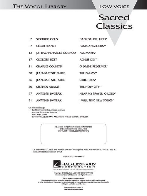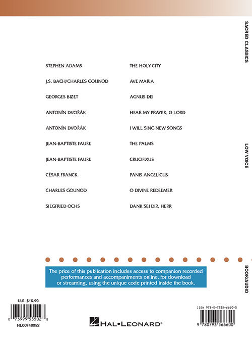 Sacred ClassicsThe Vocal Library Low VoicePublisher: Hal LeonardCategory: VocalSeries: Vocal CollectionFormat: Softcover Audio OnlineAn eminently useful collection of essential sacred favorites for classical singers. Includes an online audio access code for streaming or downloading the tracks...Regular price $21.99 -