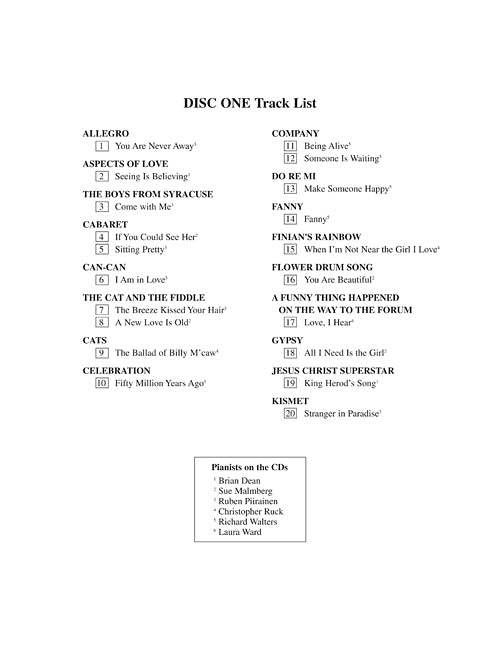The Singer's Musical Theatre Anthology - Volume 1, RevisedTenor Accompaniment CDsPublisher: Hal LeonardCategory: VocalSeries: Vocal CollectionFormat: CDTwo accompaniment CDs in each package which match the books containing a collection of songs from the musical stage, categorized...Regular price $32.99 -