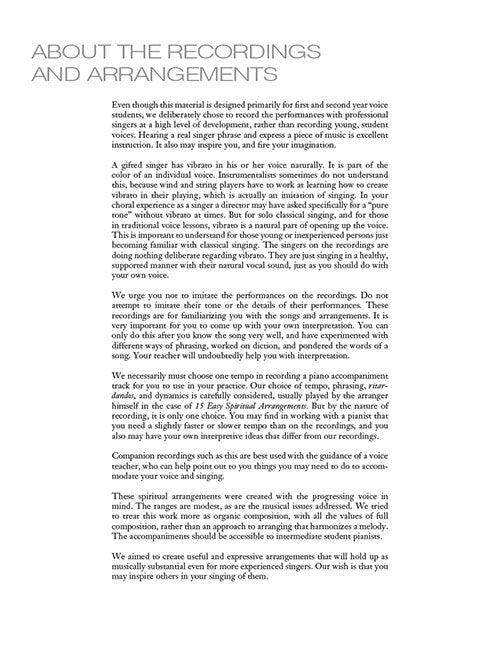 15 Easy Spiritual Arrangements for the Progressing SingerHigh VoicePublisher: Hal LeonardCategory: VocalSeries: Vocal CollectionFormat: Softcover Audio OnlineFresh arrangements for first-year voice students, with intermediate level piano parts. Spirituals are for all singers, representing a significant part...Regular price $22.99 -