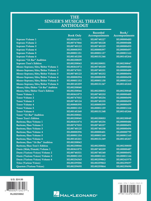 The Singer's Musical Theatre Anthology: Duets, Volume 4Set of Accompaniment CDsPublisher: Hal LeonardCategory: VocalSeries: Vocal CollectionFormat: CDCompanion CDs for The Singer's Musical Theatre Anthology: Duets, Volume 4. 00234343/Book OnlyInventory # : 00259862UPC: 888680726218ISBN: 1540019659Width: 9"Length: 12"Height:...Regular price $29.99 -