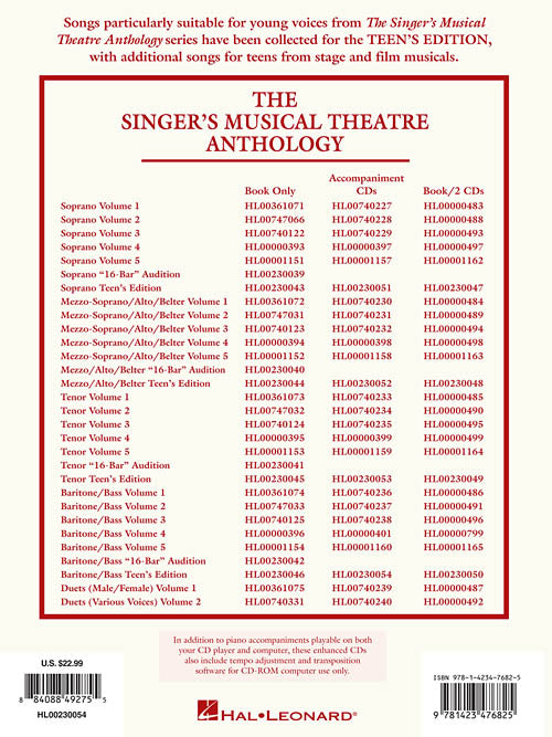 Singer's Musical Theatre Anthology Teen's Ed. Baritone/Bass Accomp. CDs Only