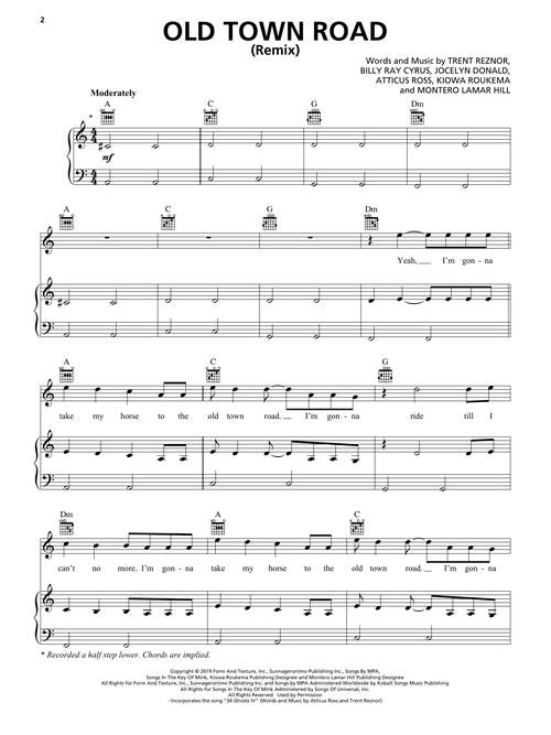 Old Town Road [Remix] (Lil Nas X feat. Billy Ray Cyrus) Piano Vocal