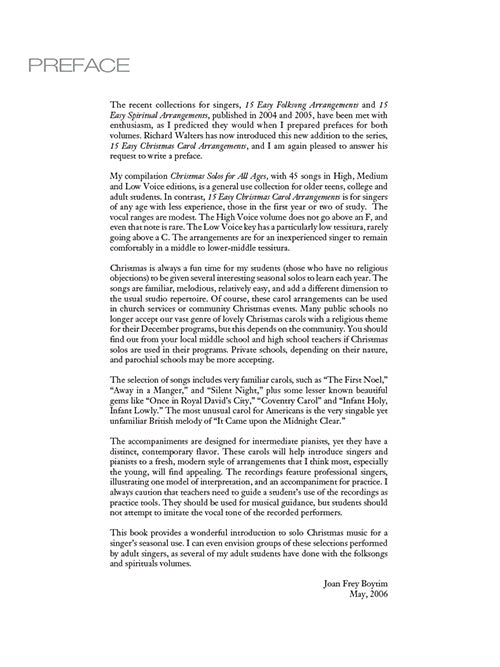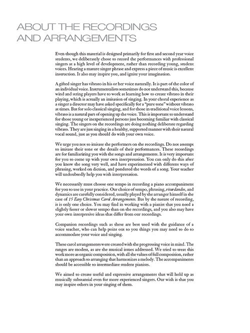 15 Easy Christmas Carol Arrangements - Low Voicefor the Progressing SingerPublisher: Hal LeonardCategory: VocalSeries: Vocal CollectionFormat: Softcover Audio OnlineFresh arrangements for first and second year voice students, with intermediate level piano parts. Beyond educational use, it...Regular price $23.99 -