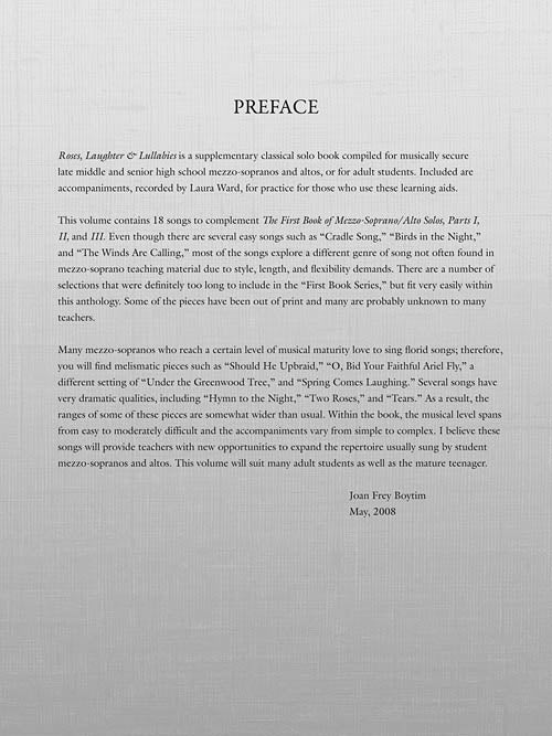 Roses, Laughter And Lullabies For Mezzo-Soprano (Alto) And Piano