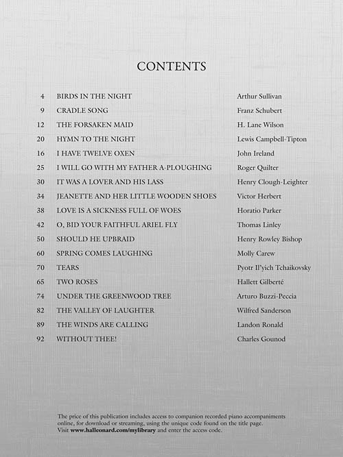 Roses, Laughter and Lullabiesfor Mezzo-Soprano (Alto) and PianoPublisher: Hal LeonardCategory: VocalSeries: Vocal CollectionFormat: Softcover Audio OnlineThis collection of 18 easy supplementary repertory songs, all in English, augments selections in Easy Songs for the Beginning Mezzo-Soprano, Easy...Regular price $23.99 -