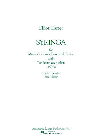 Composer: Elliott CarterSyringa (1978)Full ScorePublisher: AssociatedCategory: ClassicalSeries: VocalFormat: PaperbackFor Mezzo-Soprano, Bass/Baritone, Guitar, Alto Flute, English Horn, Bass Clarinet (and Clarinet in B-flat), Bass Trombone, Percussion, Piano, Violin, Viola, Cello, Double Bass.Inventory # : 50238740UPC: 73999455182ISBN: Width:...Regular price $71.99 -