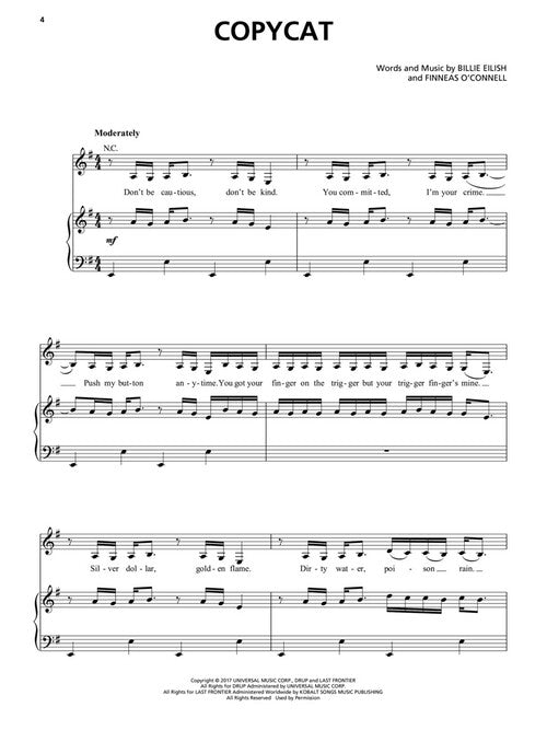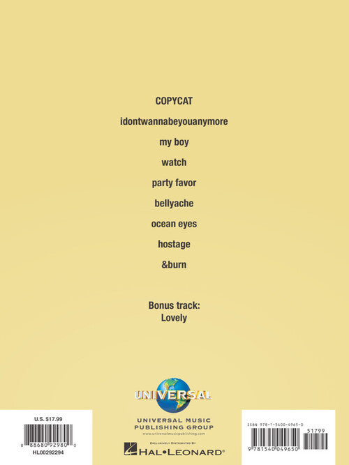 Billie Eilish - Don't Smile at Me Piano/Vocal/Guitar Artist Songbook