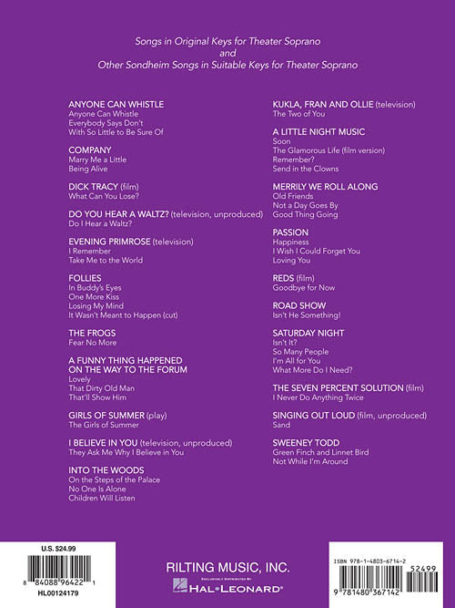 Rilting Music, Inc. Sondheim For Singers Soprano (43 Songs) Soprano