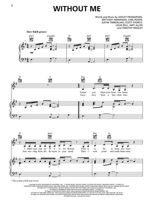 Without Me (Halsey) Piano Vocal