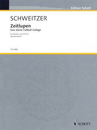 Composer: Benjamin SchweitzerZeitlupen - Eine Kleine Fussball-Collagefor Baritone and PianoPublisher: SchottCategory: VocalSeries: MiscFormat: PaperbackZeitlupen - Eine Kleine Fussball-Collage for Baritone and PianoInventory # : 49016720UPC: 884088991258ISBN: Width: 9"Length: 12"Height: 0.056"Product Weight: 0.2 lbs.Number of Pages: 12...Regular price $21.99 -