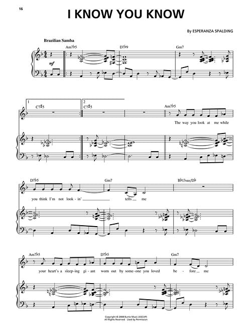 Artist: Esperanza SpaldingEsperanza Spalding - EsperanzaPublisher: Hal LeonardCategory: Keyboard & Piano/Vocal/GuitarSeries: Vocal PianoFormat: SoftcoverVocal/piano arrangements - based on Esperanza's own lead sheets! - of all 12 tracks from the 2008 release from this jazz prodigy. Songs...Regular price $21.99