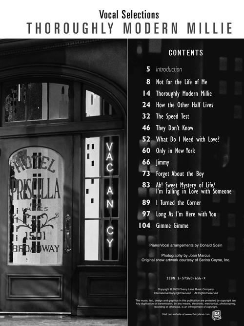 Composer: Jeanine TesoriThoroughly Modern MillieVocal SelectionsPublisher: Cherry Lane MusicCategory: Keyboard & Piano/Vocal/GuitarSeries: Vocal SelectionsFormat: PaperbackThe winner of six 2002 Tony Awards, including Best Musical, Best Orchestrations and Best Actress (Sutton Foster), Thoroughly Modern Millie takes us...Regular price $31.99 -